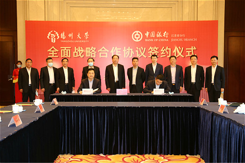 中国银行江苏省分行、中国银行扬州分行相关负责人,我校党办、校办、财务处等部门负责同志参加活动。