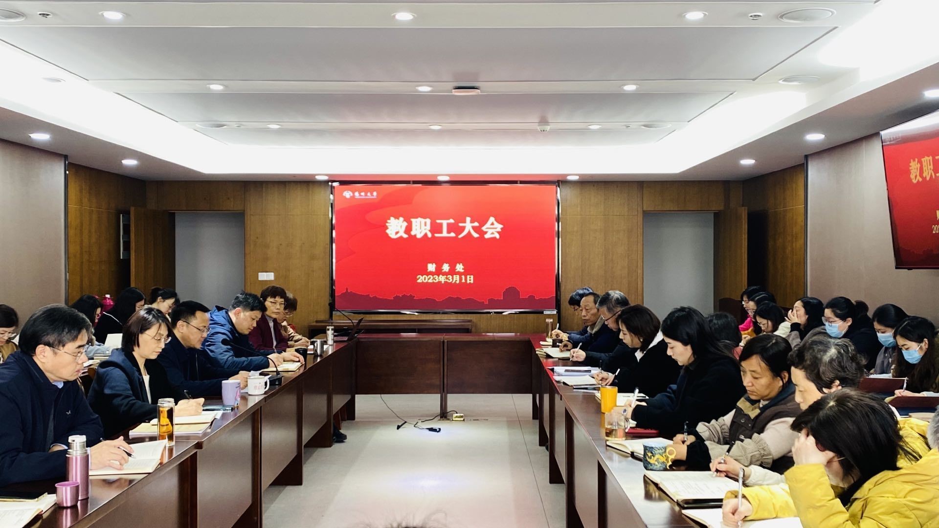 3月1日下午,财务处在会议室召开2023年教职工大会。党委常委、统战部部长、财务处处长华清君主持会议并讲话。