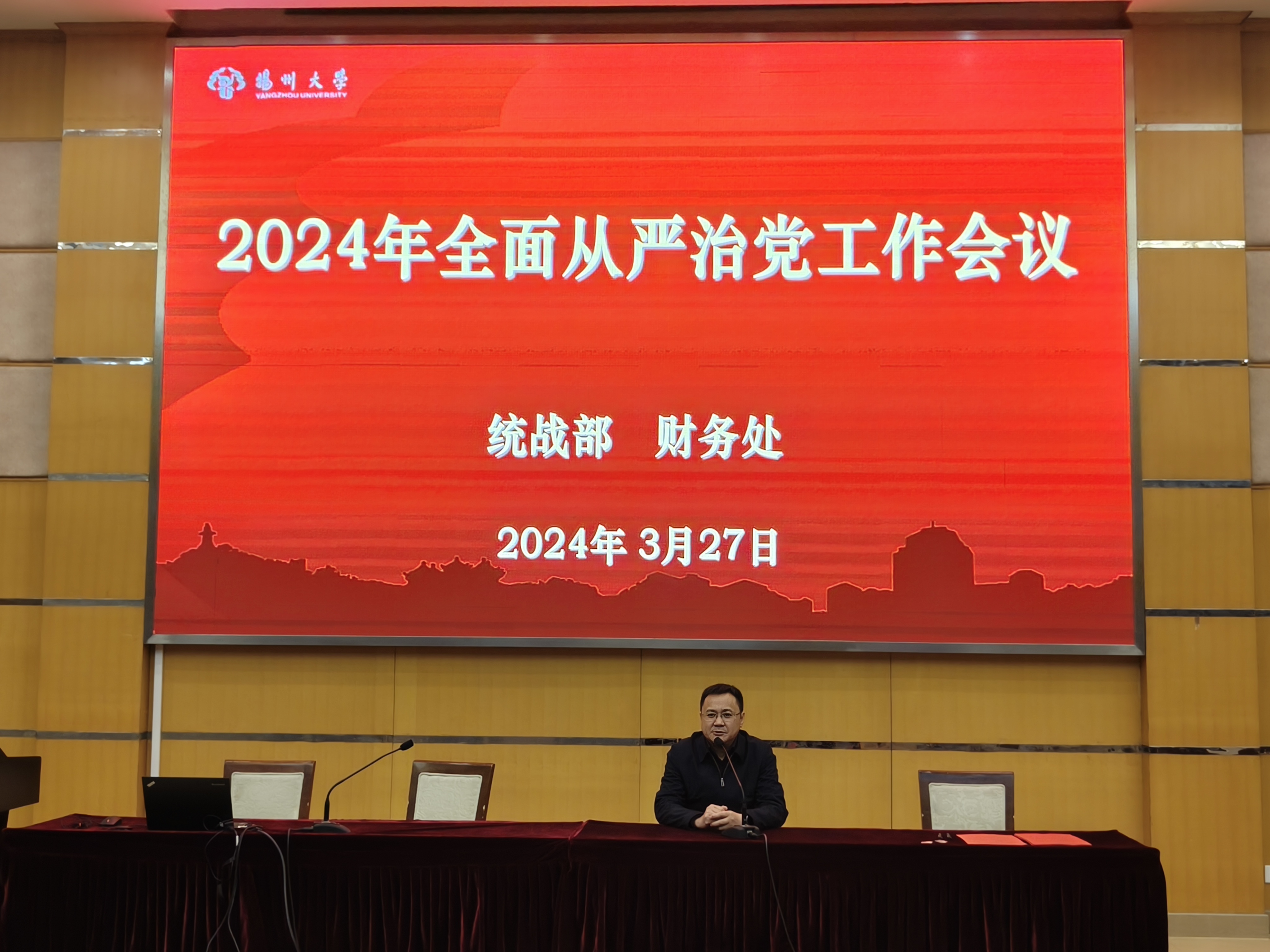 3月27日下午,统战部财务处党支部在荷花池校区教学主楼二楼多功能厅召开全面从严治党工作会议。校党委常委、统战部财务处党支部书记,统战部部长、财务处处长华清君出席会议并讲话,统战部及财务处全体人员参加会议。