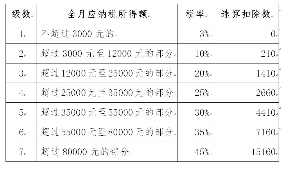 附件:1. 个人所得税税率表一(工资薪金所得适用)