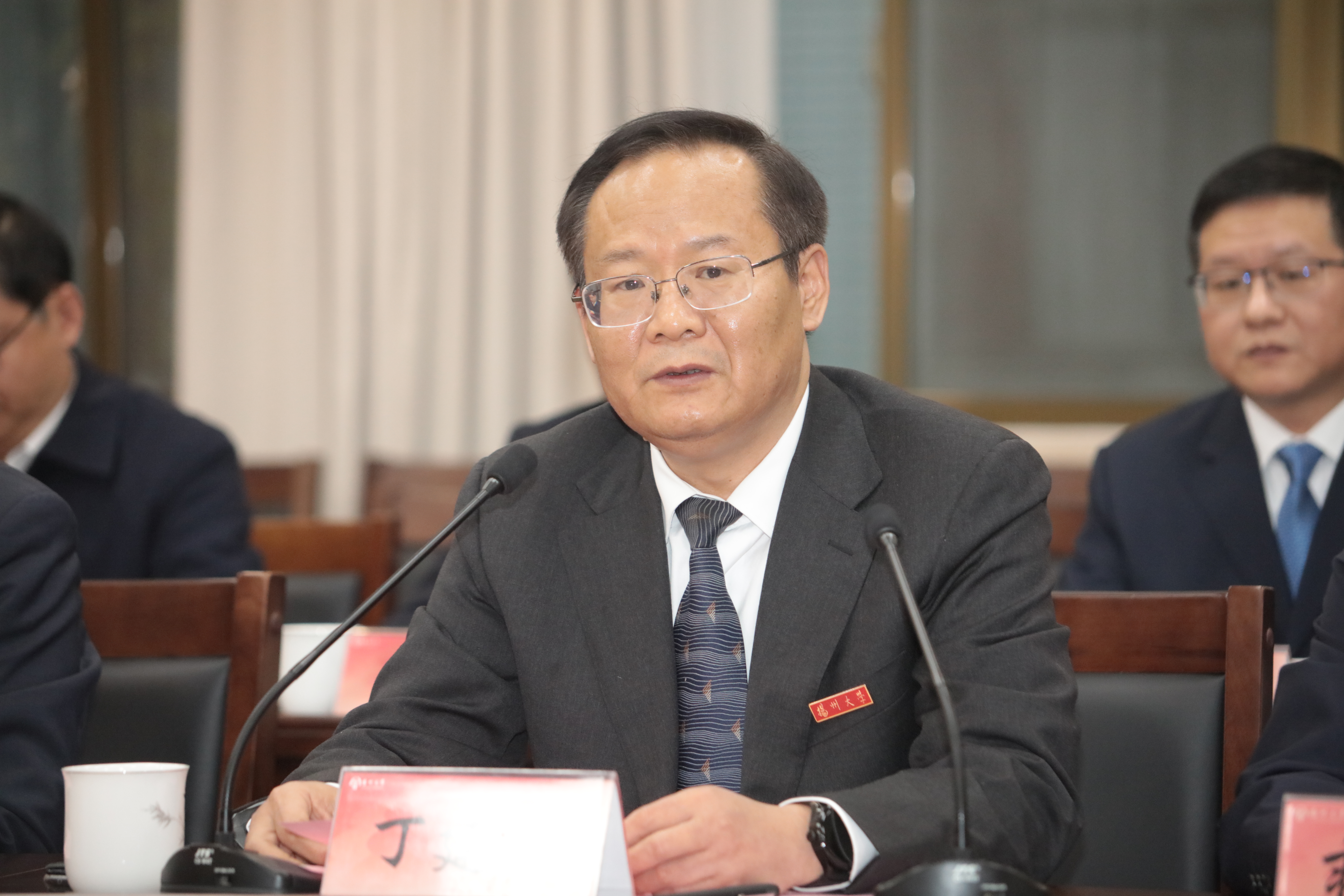 丁建宁代表学校向中国农业银行扬州分行长期以来对学校事业发展的关心和支持表示衷心感谢。他指出,本次战略合作是学校与中国农业银行落实教育优先发展战略的深化探索,也是拓展银校合作、实现合作共赢的全新起航。学校将整合配置优质资源,高质量落实好合作项目。希望双方以此为新起点,在现有合作基础上,不断拓展在服务乡村振兴、农业科技创新、人才联合培养、师生个人金融等领域的业务范围,进一步完善银校合作机制,积极探索“金融+科技”新路径,全力打造“金融+教育”新样板,深度开展“金融+智慧”新合作,为加快推进“强富美高”新江苏现代化建设和农业强国、农业强省建设作出新的更大贡献。